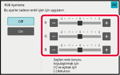Bu işlev, R (kırmızı), G (yeşil) ve B (mavi)