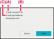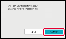 Taramanın bittiğini göstermek üzere bir bip sesi duyulacaktır.Tarama sona erdiğinde, orijinal sayfa sayısını ve gönderilecek sayfa sayısını kontrol edin ve iletimi başlatmak için [TAMAM] tuşuna dokunun.
