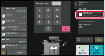 İşlev yürütüldüğünde, orijinalin görüntü verileri Hızlı Dosya klasörüne kaydedilir.Her modda bir orijinali yazdırırken veya