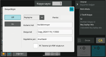 yazdırma veya iletim ile aynı anda orijinali Ana klasörde veya kayıtlı
