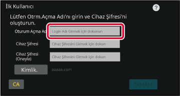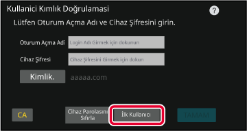 için, görüntülenen ekrandaki "İlk Kullanıcı" tuşuna dokunun.