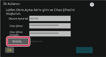 "Cihaz Parola Onayı" bölümündeki 3. adımda ayarlanan