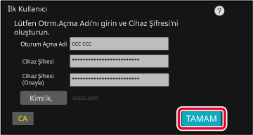 " olarak görünür. Girildikten sonra, [TAMAM]