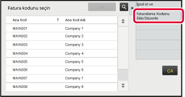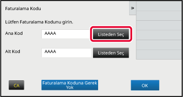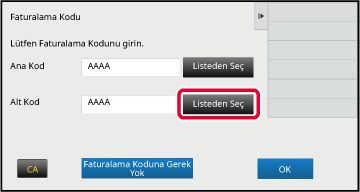 Faturalama kodu giriş penceresi açıldığında ana kodun [Listeden Seç] tuşuna dokunun.