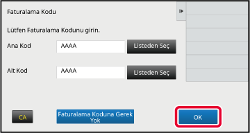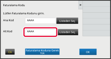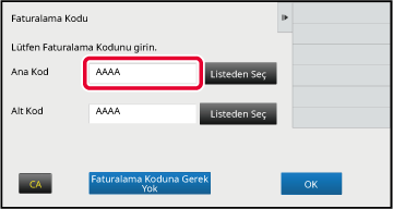 Faturalama kodu giriş penceresi açıldığında [Ana Kod] alanındaki kutuya dokunun ve ardından ana kodu girin.