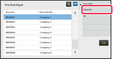 Kod düzeltme ile ilgili bilgi için, " YENİ BİR FATURALAMA KODU KAYDETME" bölümündeki adım 4 ila 7'ye başvurun.İşlem panelindeki [Kaydı bitir] tuşuna dokunun.