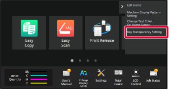 The settings are saved in the machine and applied.You can change the transparency of the shortcut