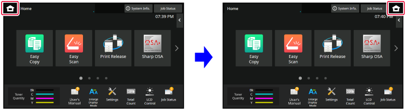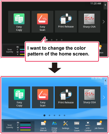 The settings are saved in the machine and applied.Multiple home screen layout patterns are