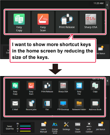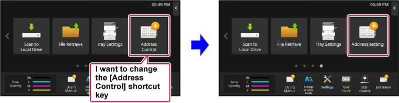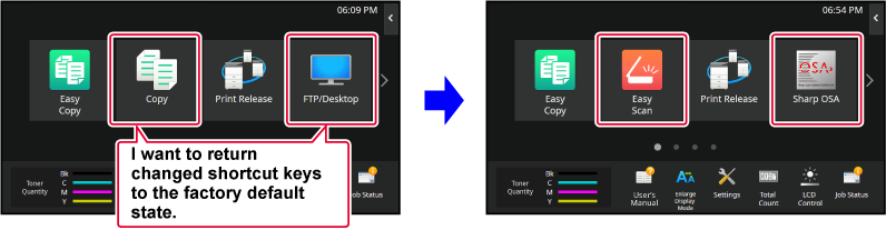 The settings are saved in the machine and applied.This section explains how to change a shortcut