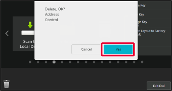 A yellow frame appears around the selected shortcut key. With the shortcut key selected, tapTap the [Yes] key.