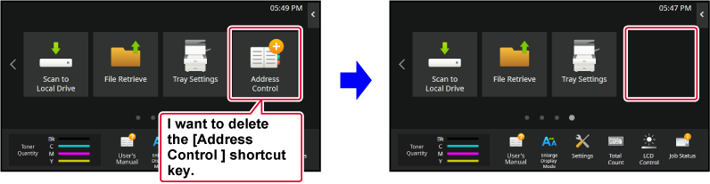 The settings are saved in the machine and applied.This section explains how to move a shortcut