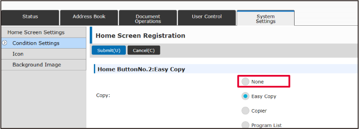When you click the [Submit] button, the [Home Screen Registration] screen closes.When you have finished configuring the settings, click the [Submit] button.