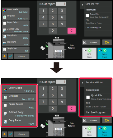 The settings are saved in the machine and applied.You can add shortcut keys to the home screen,