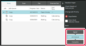 status, from [Spool], [Job Queue] and [Complete], in that
