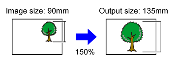 Specify the image size (dimensions of the image to be enlarged or reduced) and the output size (dimensions of the enlarged and reduced images).