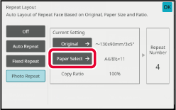 When you tap the original size key, the original direction is indicated in the "How To Set". Place the original to meet the displayed orientation.Tap the [Paper Select] key and select a paper size.