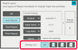 Tap the [Layout w/o spacing] key or the [Layout evenly spaced] key, and then tap the [OK] key.Specify the repeat partition line.