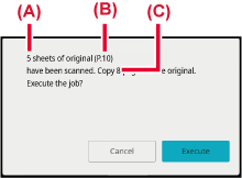 On the confirmation screen, the number of scanned original sheets appears in (A), the number of scanned sides in (B), and the number of copies excluding blank pages in (C).You can adjust the background by making