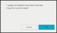 The number that is displayed is the number of scanned original sheets, not the number of scanned original pages. For example, when 2-sided copying is performed using one original, the number "1" will appear to indicate that one original sheet was scanned, not "2" to indicate the front-side page and the reverse side page.Tap the [OK] key to start copying.