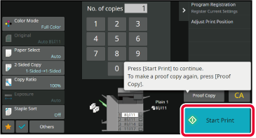 Make only one set of copies.Check the copy result. If no problem is found, tap the [Start Print] key.