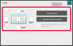 Place the original in the document feeder tray of the automatic document feeder, or on the document glass.Tap the [Others] key, and tap the [Erase] key.