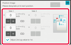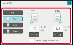 Tap the numeric value display indicating the margin shift area on the front side or reverse side, and enter the area using the numeric keys.Tap the [Color Start] or [B/W Start] key to start copying.