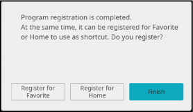 A registration completion message appears.Select whether or not the program will be added to the home screen or the favorites.