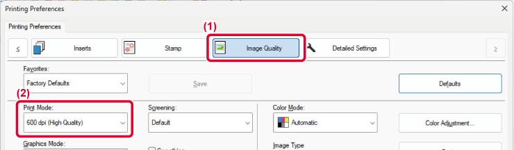 Select this mode to print color photos with higher definition, and to print fine lines clearly. |