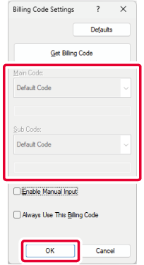 In Windows 10, click the printer driver name of the machine, click [Manage] and click [Printing Preferences].Specify a billing code