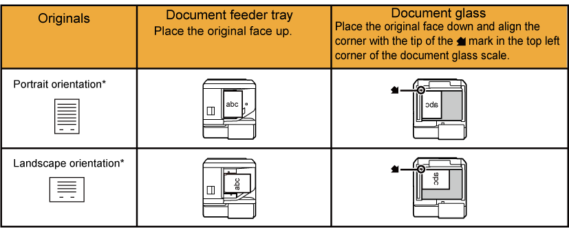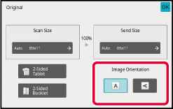 Specify the orientation of the original placed in step 1.Tap the [B/W Start] or [Color Start] key to start scanning of the original.