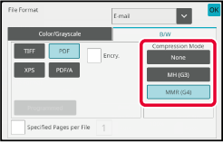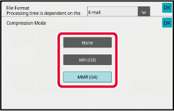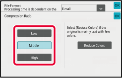 (On the BP-51C26/BP-51C31/BP-51C36/BP-51C45/BP-51C55/BP-51C65, the OCR expansion kit is required.) Tap the [Compression Mode] key or [Compression Ratio] key.