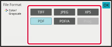 Tap the [Color/Grayscale] or [B/W] tab and select the format mode for scanning.
