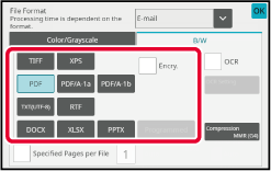 When the OCR function expansion kit is not installed on the BP-51C26/BP-51C31/BP-51C36/BP-51C45/ BP-51C55/BP-51C65, or when [Disabling of OCR] is set in the system settings.To change the number of pages per file, set the [Specified Pages per File] checkbox