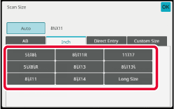 Tap the [Scan Size] key and tap the [Custom Size] tab.