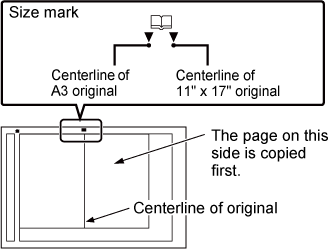 When scanning finishes, place the next original and tap the [Start] key.The opened pages of a saddle-stitch pamphlet