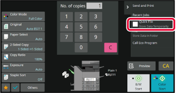 When the function is executed, the image data of the original is stored in the Quick File folder.Tapping the [File] key of the document