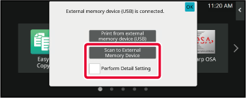 When a screen for selecting the action appears, tap [Scan to External Memory Device].