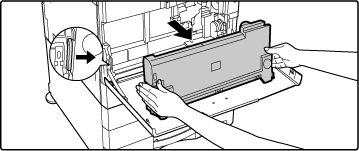 Press both sides of the toner collection container with your hands until the left and right locks fully engage.Close the front cover.