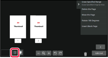 This changes the mode to edit mode. Pages of the original can be changed, rotated, or deleted. |