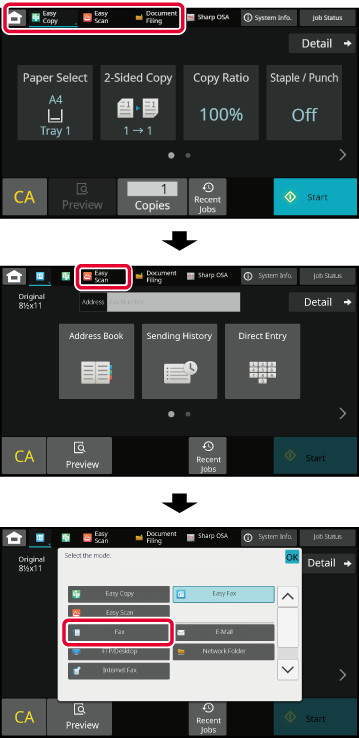 Select functions that can be utilized in respective modes. Tap the tab, and the list of function keys is displayed.