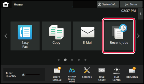 Tapping the [Home Screen] key displays the home screen