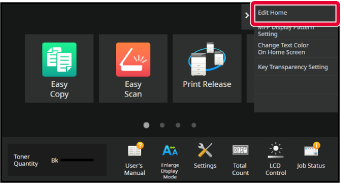 Some settings may require that you enter your user password after clicking [Home Screen Settings]. If you did not perform user authentication, you must enter the administrator password.Click [Icon].