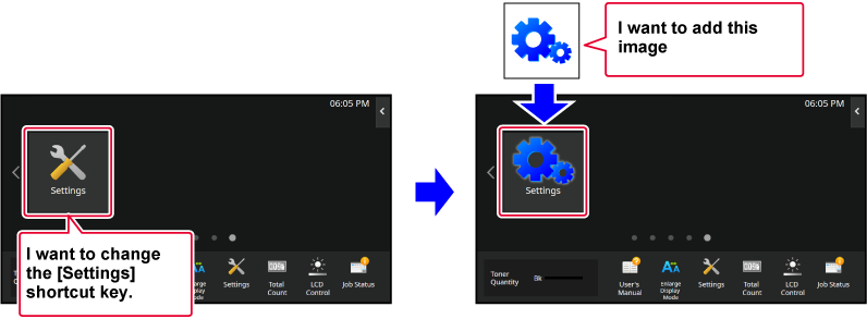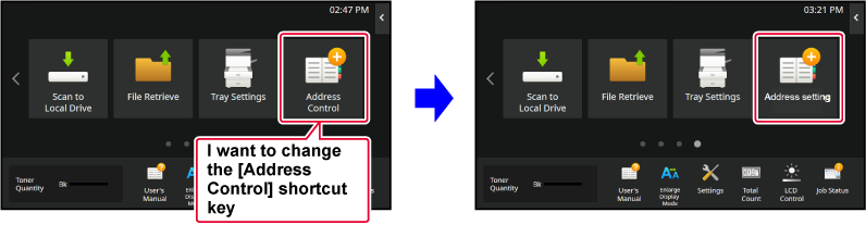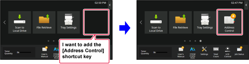 Enter the administrator password.Tap the shortcut key you want to move, and tap [Move Key].