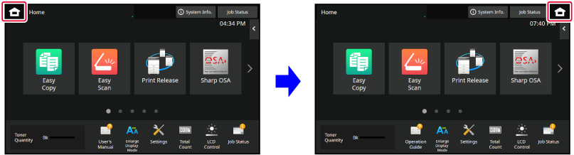Some settings may require that you enter your user password after clicking [Home Screen Settings]. If you did not perform user authentication, you must enter the administrator password.Select [Left] or [Right]