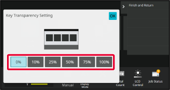 Some settings may require that you enter your user password after clicking [Home Screen Settings]. If you did not perform user authentication, you must enter the administrator password.Click [Condition Settings], and click the [Key Transparency Setting] button.
