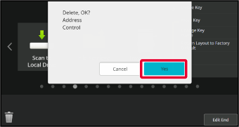 A yellow frame appears around the selected shortcut key. With the shortcut key selected, tapTap the [Yes] key.