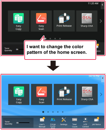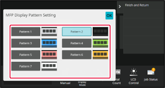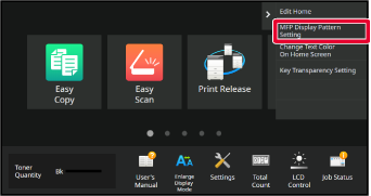 Open the action panel on the home screen, and tap [Machine Display Pattern Setting].