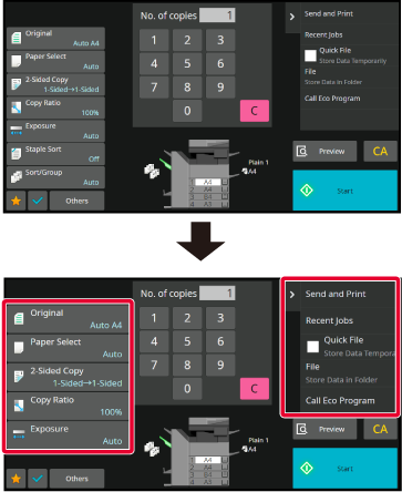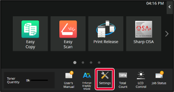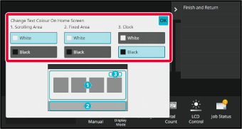 The settings are saved in the machine and applied.In a Normal mode screen such as copy or