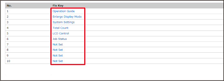 You can click [Not Set] to add a new fixed key.Select the function you want to add, and click the [Submit] button.