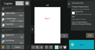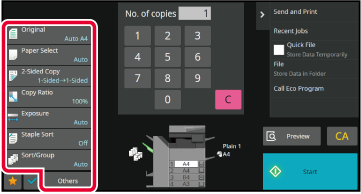 SELECTING THE ORIENTATION AND SIZE OF THE ORIGINALSELECTING THE PAPER TRAY FOR COPYINGAUTOMATIC 2-SIDED COPYINGENLARGING/REDUCING THE LENGTH AND WIDTH SEPARATELYCHANGING THE EXPOSURE AND ORIGINAL IMAGE TYPEOUTPUT